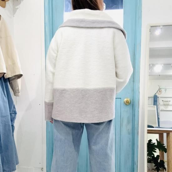ホワイト✖️グレーバイカラージャケット